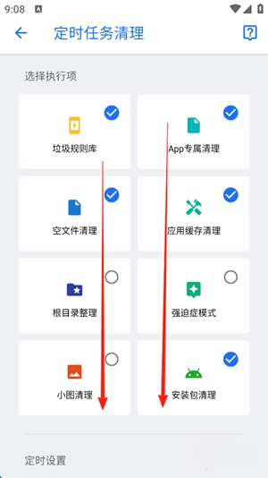 在这个界面,你可以选择需要定时执行的项目,接着向下滑动屏幕,找到“定时设置”区域。