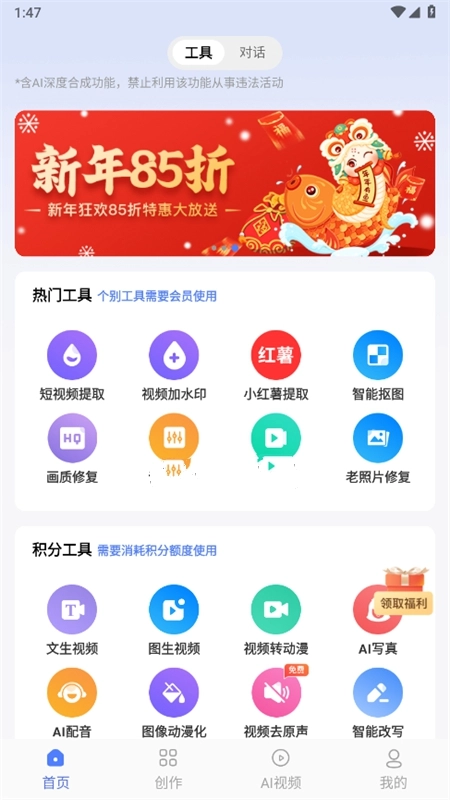 2. 进入首页,你会发现有大量工具可供使用,像短视频提取、视频加水印等。