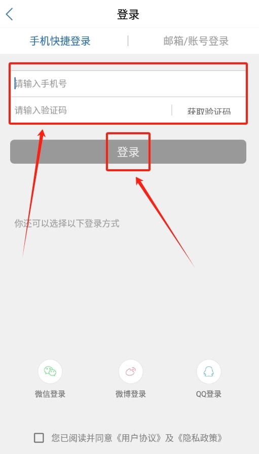 2、来到登录页面,在相应位置填入手机号码,查看手机短信,将收到的验证码输入到指定框内。