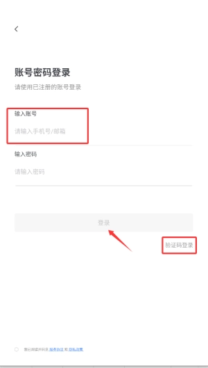 2、要是选择账号登录,就需要输入注册时所设置的邮箱或手机号,以及与之对应的密码来完成验证。