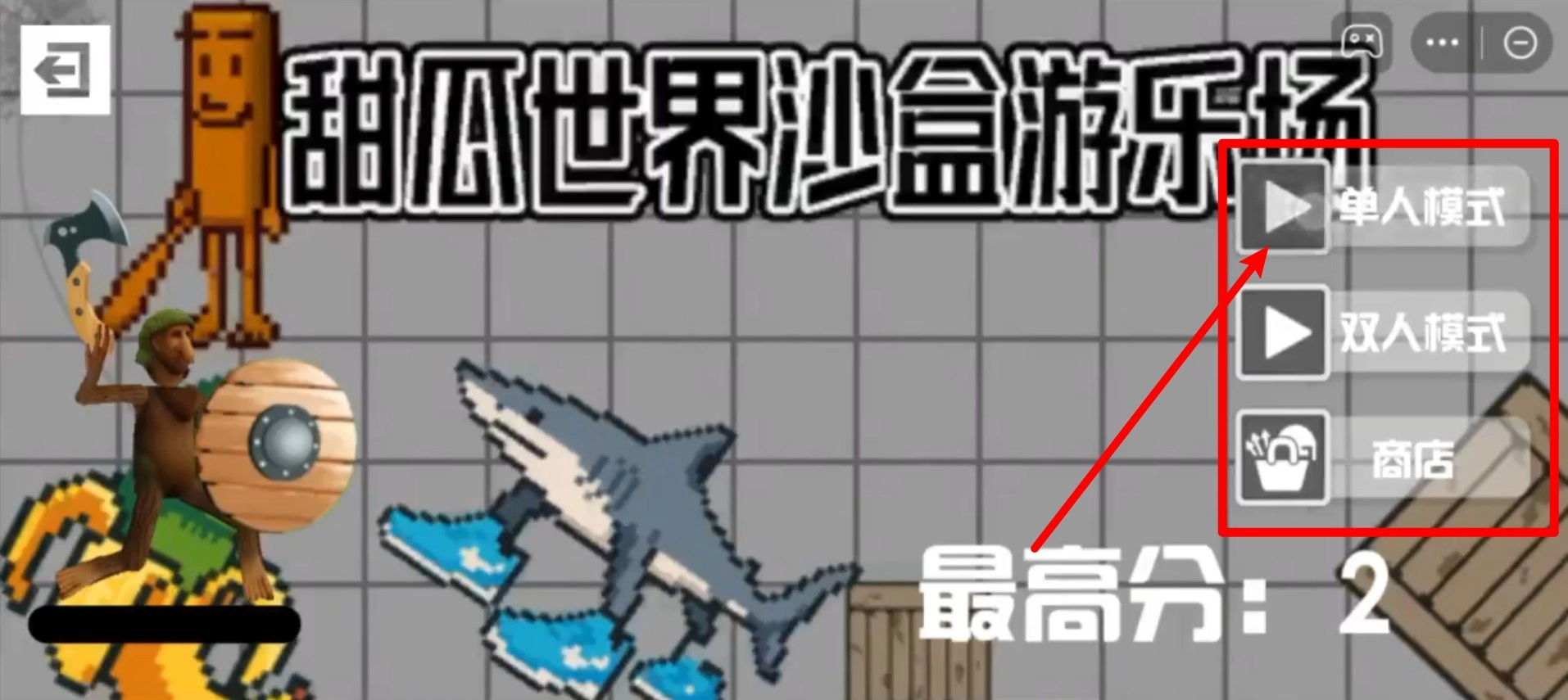 1. 只需点击首页右侧的“单人模式”按钮,就能开启挑战。此外,还能够切换至双人模式,或者前往商店查看皮肤与道具相关内容。