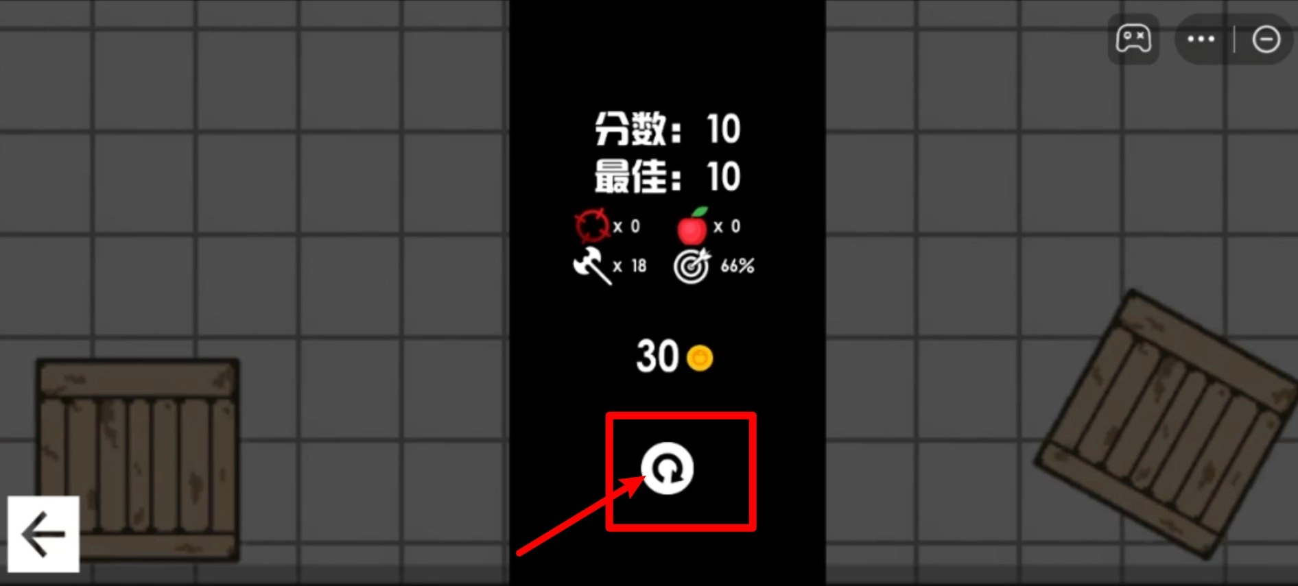 3. 在结算画面,你能够查看分数、命中率以及剩余资源。若想快速重新开始战斗,点击画面中间的圆形按钮即可。