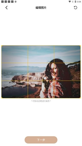 3、照片上传完成后,用户能够对照片的范围进行裁剪和修改,随后点击“下一步”以继续后续操作。