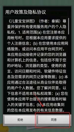 1. 第一步,点击同意按钮,成功进入应用界面,为开启有趣的拼图之旅做好准备。