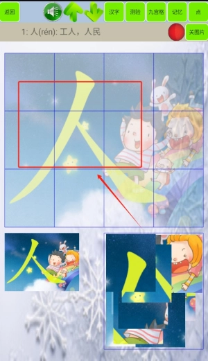 2. 汉字学习功能通过拼图的形式,引导孩子开启汉字学习之旅,让孩子循序渐进地认识更多汉字,进而提升中文理解能力。
