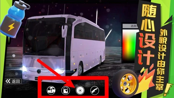 3. 车辆自定义界面:设有整车外观、喷漆颜色、轮毂款式以及配件修改等丰富选项,助你打造独具专属风格的梦幻巴士。
