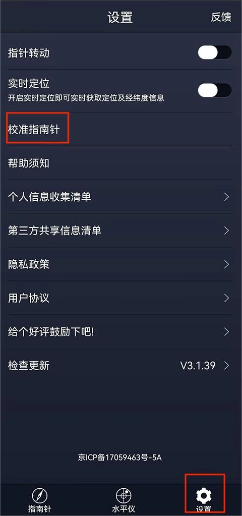 1. 打开“设置”页面,找到并点击“指南针”校准功能,随后依照页面提示转动手机完成校准。