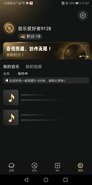 4、耐心等待音乐生成。