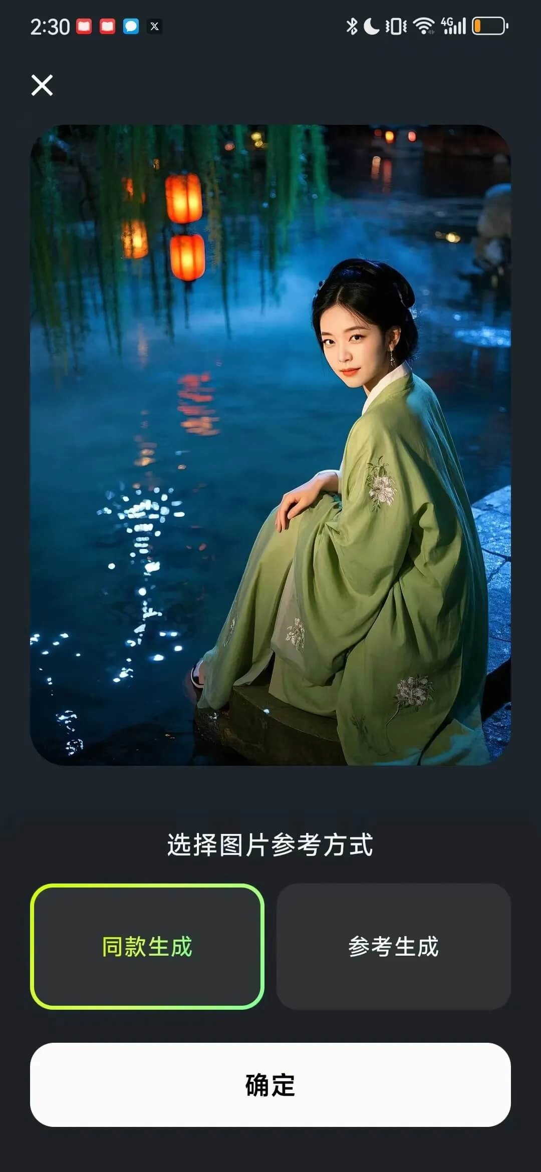 如以下图片所示,上传参考图之后,若选择同款生成,便会将图像中的脸替换为您的脸;要是选择参考生成,则会以这张图片的元素与色彩作为参考。