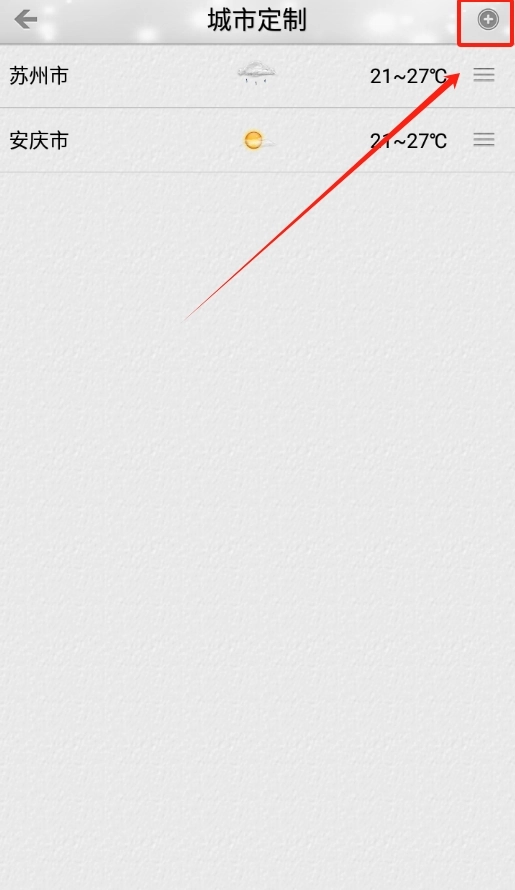 2、点击左上角后,右上角还有一个加号,接着点击它,便可进入添加城市的操作页面。