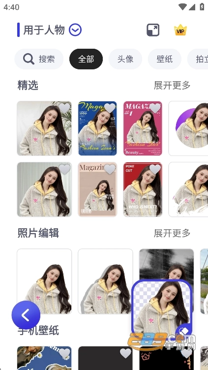 场景化模板资源:推出适用于特定场景的一键式模板,像社交平台封面、证件照排版、拼图模板等等。每个模板都配有预览效果,方便用户直接套用,还能对细节进行修改。
