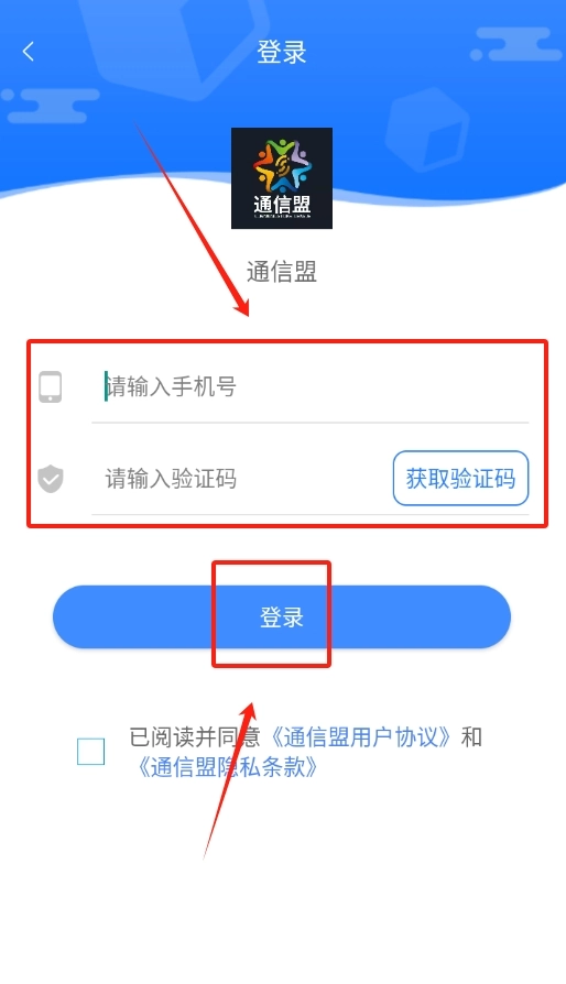 3、于登录框内填入手机号,获取验证码后填入,接着点击登录按钮,以此完成操作。