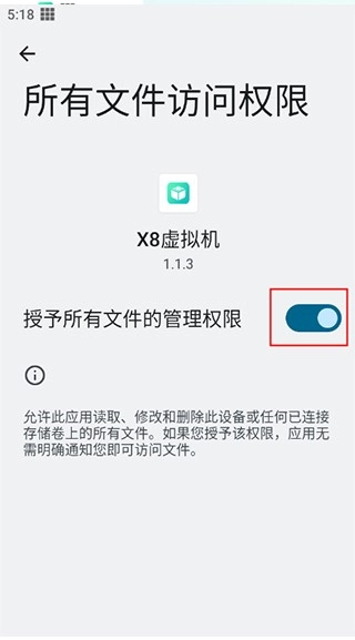 第一步,要保证真机X8虚拟机应用权限里的悬浮窗处于开启状态。第二步,在虚拟机的设置当中,把悬浮球打开。在使用虚拟机时,只要点击悬浮球,就能完成在真机和虚拟机之间的切换操作。