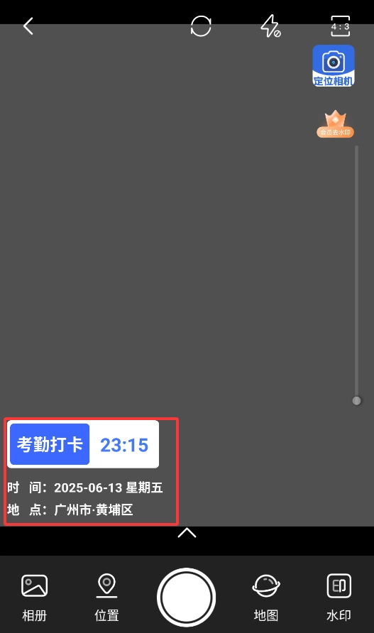 3、拍摄完成后,照片会自动添加上专属水印,水印中包含地理位置与拍摄时间,在照片左下角即可查看。