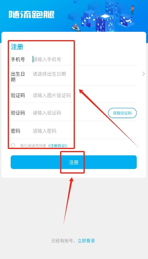 1. 前往应用商店,搜索“随流跑腿”进行下载安装。安装完成后,打开应用,完成实人认证以及交易密码的设置流程。