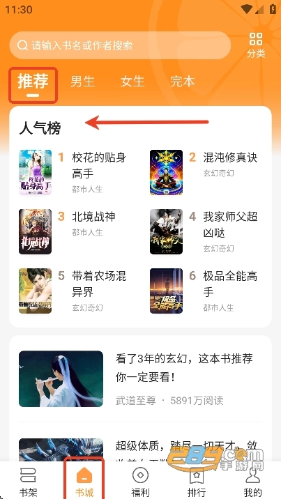 当用户打开app后,能够在书城的推荐页面,挑选到最新且最热门的小说资源。