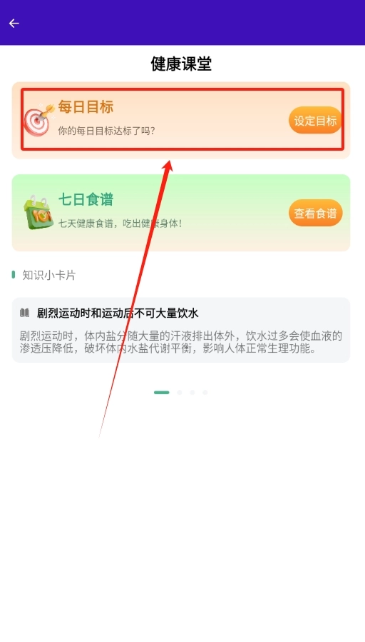 2. 当进入“健康”页面后,于诸多选项之中,点击“每日目标”这一选项,着手准备设置个人目标。