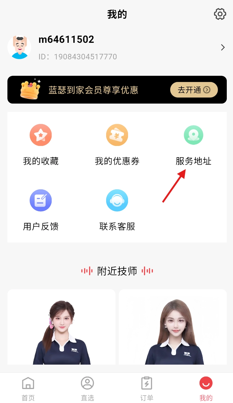 2、当跳转至个人页面时,于相关功能列表里,寻找到标有“服务地址”的入口,然后点击进入。