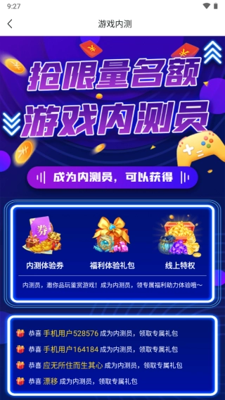 2. 在首页界面向下滑动,找到“内测名额抢先领”。
