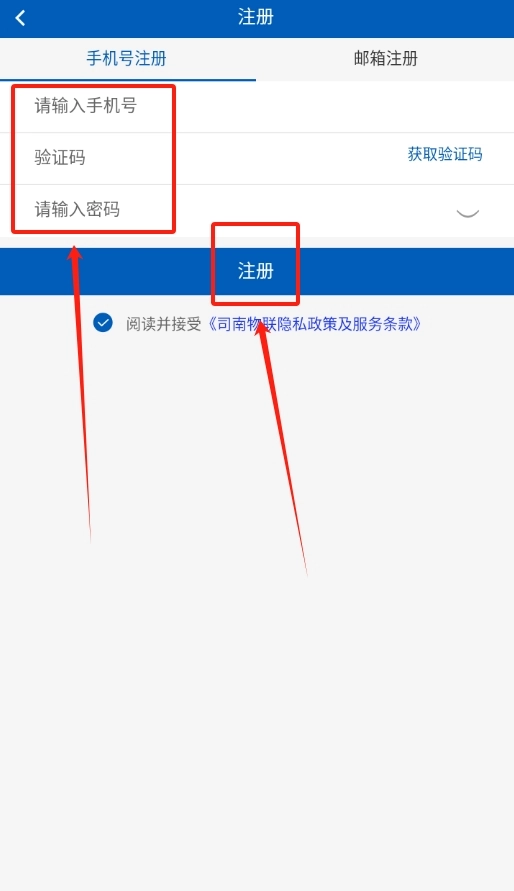 3、新用户注册时,输入手机号获取验证码,填写验证码并设置密码,即可完成账号注册流程。