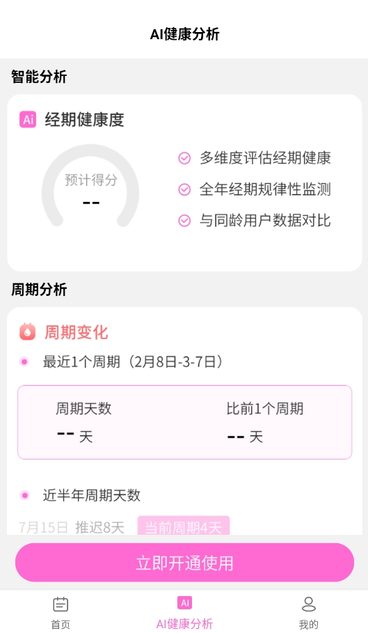 月经期助手AI这款经期记录APP真的超好用!它能帮你轻松记日子、精准算周期。只需输入几次月经时间,AI就能准确预测下次月经何时来临,还会贴心提醒排卵期。而且,所有数据都经过加密保存,完全不用担心隐私会泄露。备孕的姐妹们用它算易孕期超方便,普通女生用来记日子也便捷无比。它的界面简单清晰,操作一点都不费劲。每个月特殊的那几天,有这个APP提醒,真的特别省心。大家快点下载试试呀!