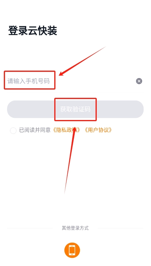 3、点击同意协议后进入主界面,在登录入口位置,输入本人手机号,随后点击获取验证码,待收到验证码后,将其准确填入对应框内完成登录 。