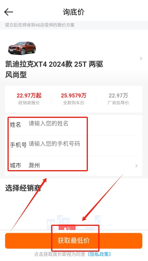 3、依次填写自己的姓名、手机号以及所在城市,仔细确认这些信息无误后,点击 “获取低价” 按钮,随后等待消息即可。