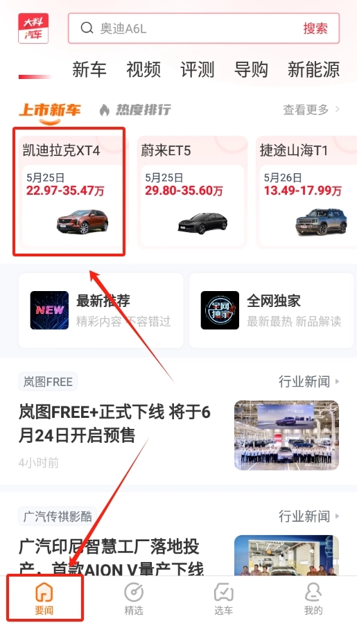 2、汽车资讯浏览操作指引:于首页查看要闻、行情等栏目板块,获取汽车行业最新动态以及原创内容资讯。