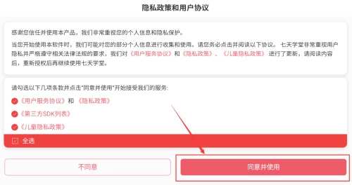 1. 点击红框中的“同意并使用”按钮,以确认隐私政策条款。