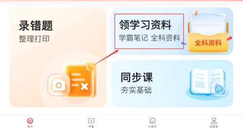 3、轻点红框领取学习资料,即可获得全科学霸笔记。