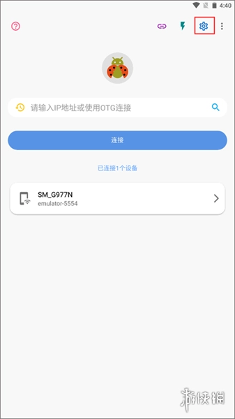 首先,打开甲壳虫ADB助手这款APP,接着点击位于右上角的“设置”按钮,由此进入设置界面。