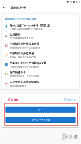 (3)在知晓解锁后所能获取的功能后,支付对应费用便可完成解锁,进而成为高级版用户。