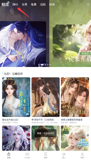 1. 打开闪艺APP后,于首页导航栏中选择“排行”板块,此板块展示平台上的各类小说榜单。
