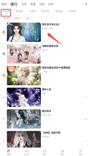 2、浏览“热作榜”专区时,能够依据作品类型或者更新时间进行筛选,从而快速找到心仪小说并点击其封面。