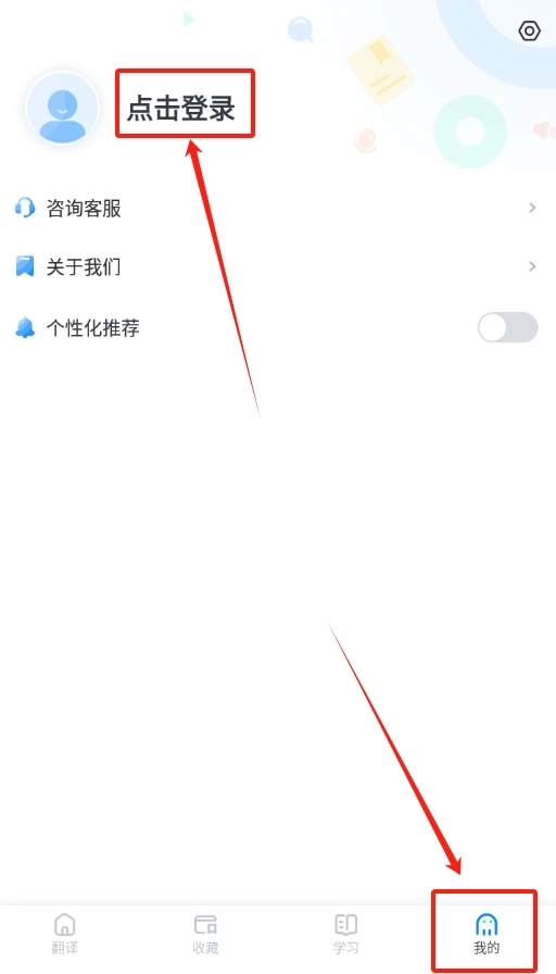 1. 开启粤语翻译帮软件,在页面底部找到“我的”选项,点击该选项后,即可看到登录按钮。