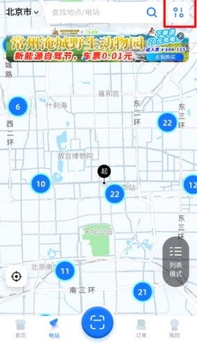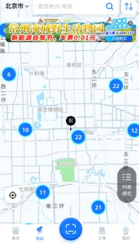 2、点击电站地图模式,就能直观地查看到附近的充电桩。