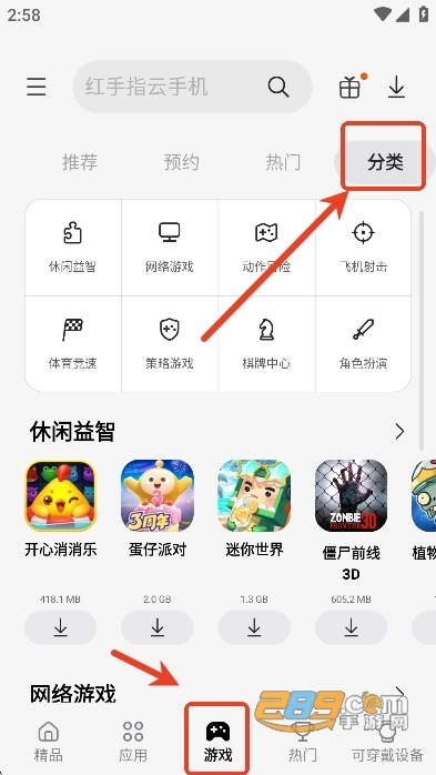 用户还能够在游戏页面依据游戏类型,筛选出自己心仪的游戏,比如角色扮演、休闲益智等。