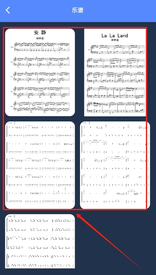 2、当进入乐谱页面后,从众多乐谱中挑选出一个你心仪的乐谱,然后轻轻点击,即可进入其详情页。