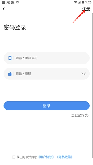 1、下载并打开软件,随后点击注册。