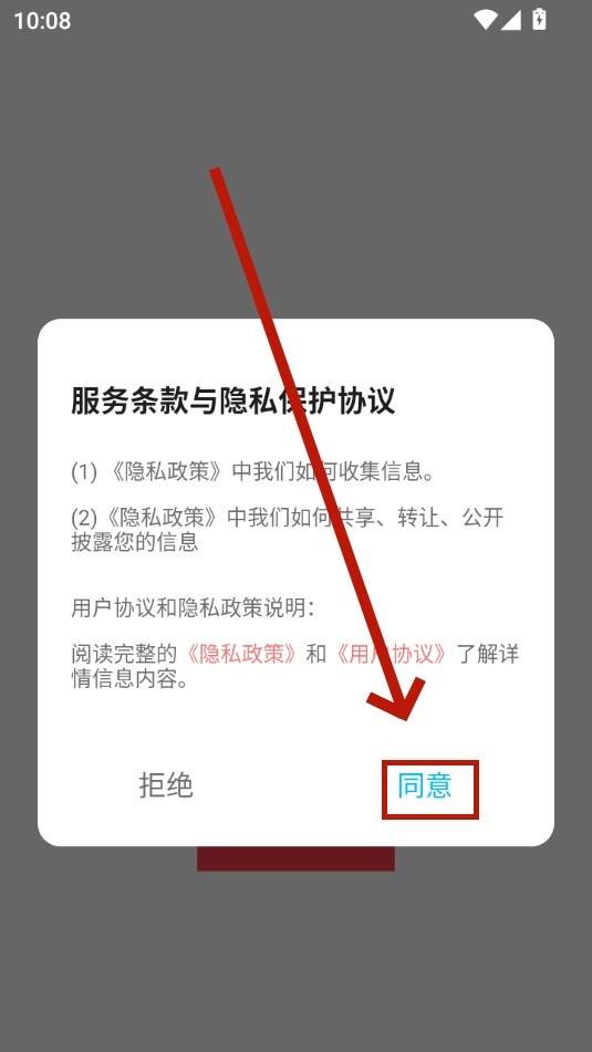 安装并打开小红莓写作助手,点击“同意”按钮。