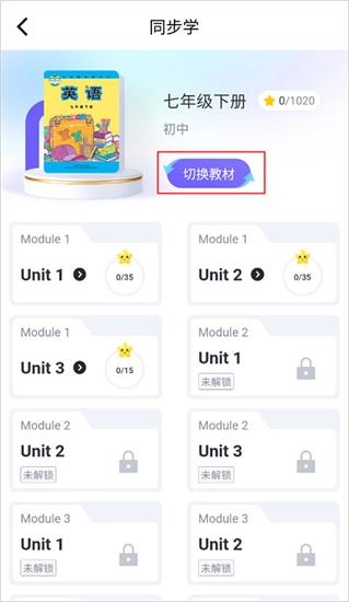 2. 进入【同步学】,轻点【切换教材】按钮。