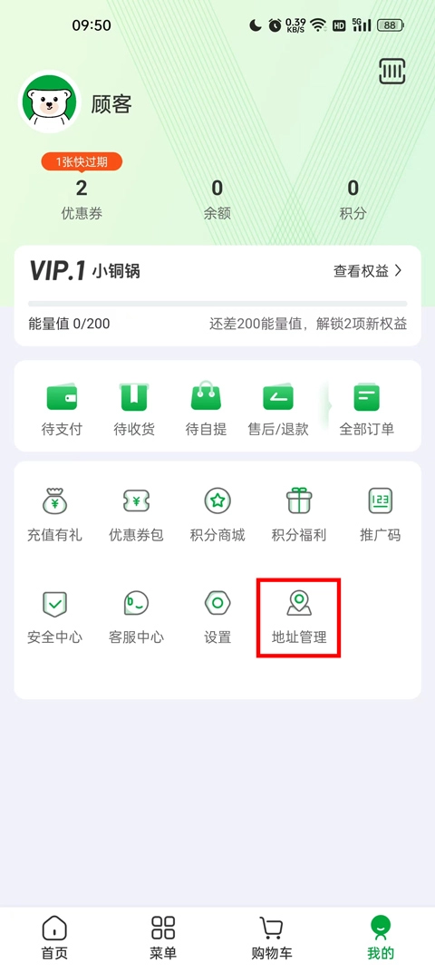1. 在本站下载软件,打开后进入首页,选择“我的”-“地址管理”,完善收货地址。