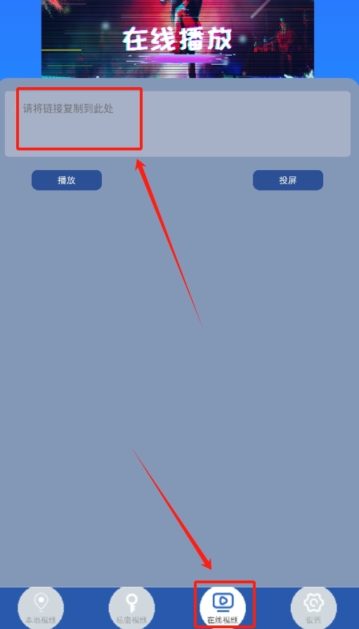 4、在线视频链接投屏步骤:于在线播放页面,输入有效的视频链接,接着点击投屏按钮,就能实现播放。