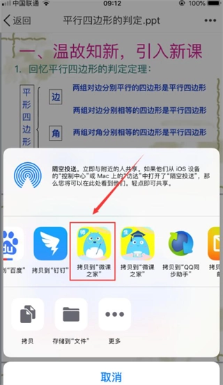1. 把课件发送至QQ或微信的聊天窗口里,接着点击打开该课件。