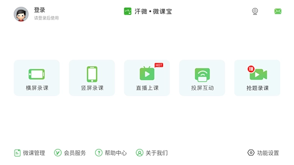 一、打开汗微微课宝,你会发现其中具备横屏录课、竖屏录课、直播上课等多种功能。