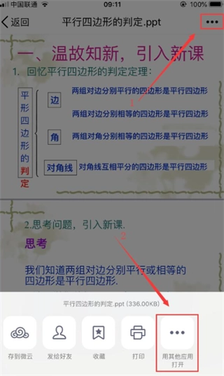 2. 轻点右上角的更多图标“...”,接着选择“用其他应用打开”