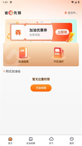 3、接下来,大家打开自己的定位权限,如此便能找到周边的优惠加油站。