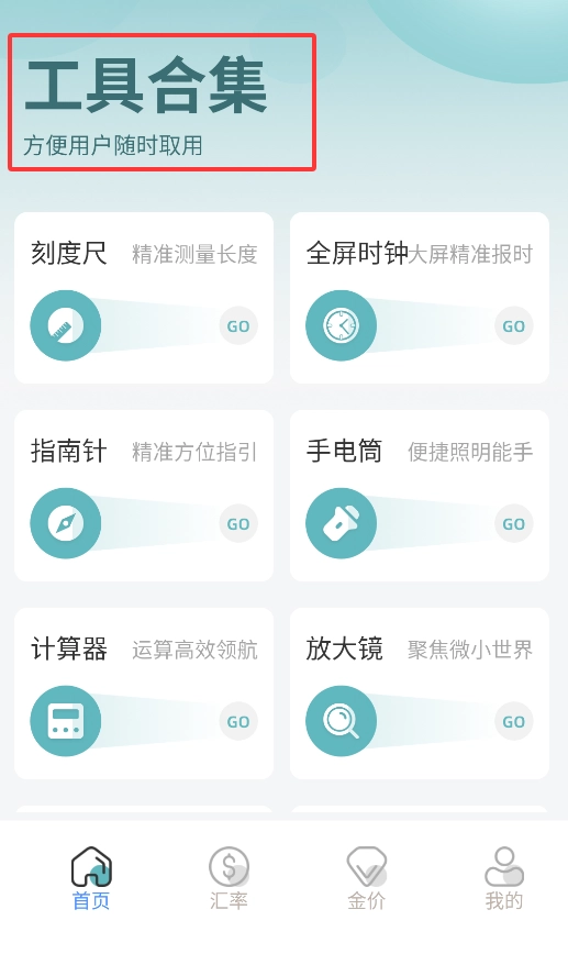 橘汁软件旗下的工具箱APP超实用,像指南针、计算器这类常用工具一应俱全。它还具备查实时金价的功能,为买卖黄金提供参考。要是你在日常工作和生活中常需要用到小工具,真心建议你安装一个试试,用起来会便捷许多。这款APP功能丰富却不繁杂,操作起来也很顺手。