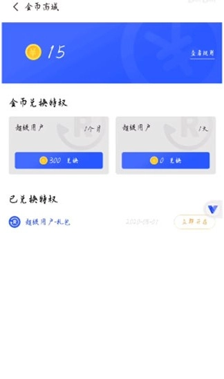 2. 开启金币兑换特权,其中包含超级用户一个月零金币兑换选项,点击该零金币兑换按钮。