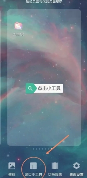 4、通过向左滑动屏幕,找到kwgt工具图标后点击。